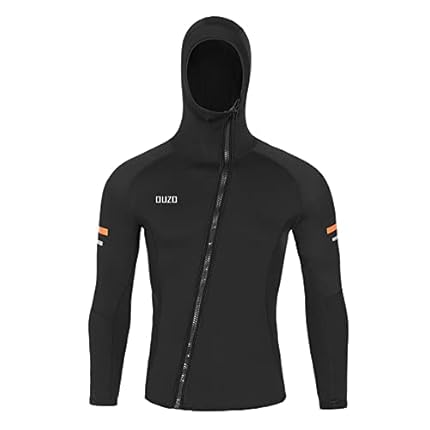 Wetsuit Top Men’s 1.5Mm, Hooded Neoprene Wetsuits Jacket with Long Sleeve Front Zipper for Diving Surfing Swimming Snorkeling