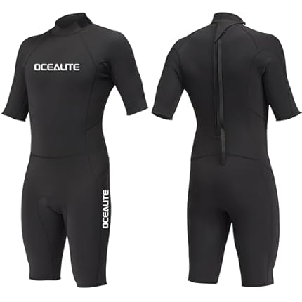 Ocealite Men’s 3mm Shorty Wetsuit Neoprene Back Zip Diving Suit Flatlock Stitch Lightweight Surfing Snorkeling Paddleboarding Swim Suit with Key Pocket