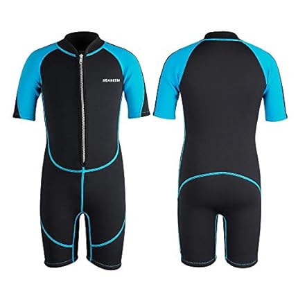 Seaskin Kids Wetsuit for Boys Girls Toddlers, 2mm Front Zipper Shorty Wetsuits, 3mm Back Zip Full Wetsuit, Neoprene Thermal Swimsuits for Diving Surfing Swim Lessons