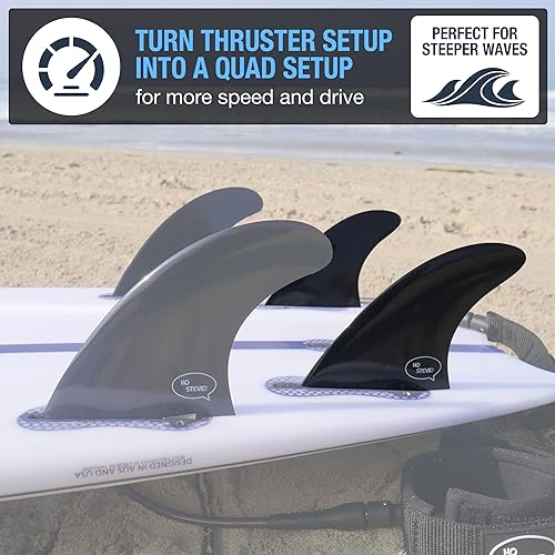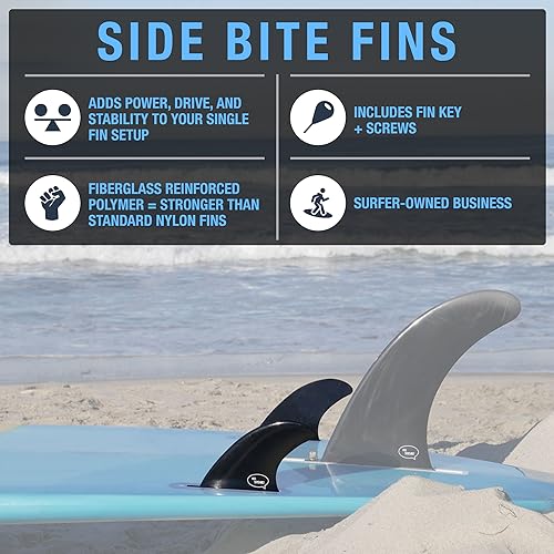 🌊 Sidebite fins add POWER, DRIVE, and STABILITY to your single fin setup. Or turn your thruster setup into a QUAD setup, using these fins as your rear trailer fins.