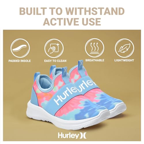 Hurley Kids Camby Lightweight Slip-on Sneakers, Walking, Basketball, Tennis, Running Shoes for Kids, Breathable Slip On Sports Shoes for Boys & Girls, with Padded Insole & Non-Slip Rubber Outsole