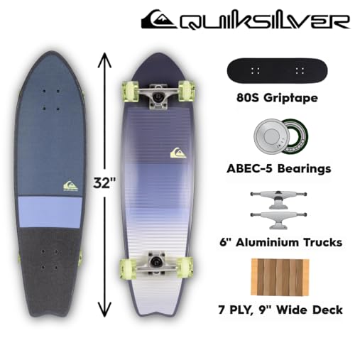 Quiksilver Fishtail Cruiser Skateboard 32 Inch – Durable Skateboard for Boys, Girls, Kids Ages 8+ – Stylish Design, Smooth Ride, Beginner Friendly Cruiser