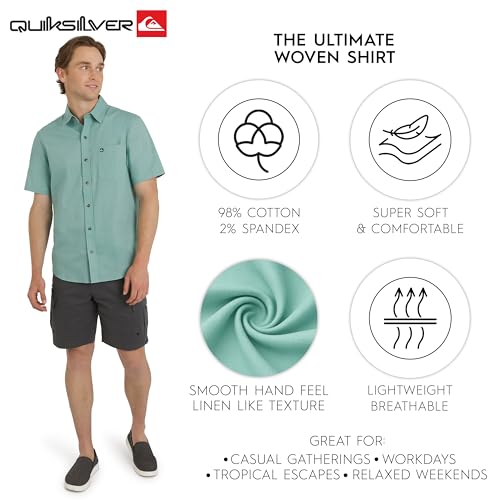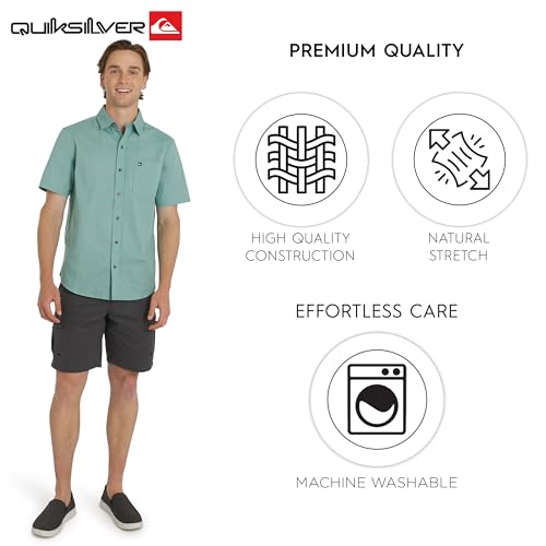 Embrace the Quiksilver lifestyle and Unleash Your Adventure with this essential short-sleeve button-down shirt that embodies the thrill of the ocean and the spirit of exploration. Designed for versatile style, this woven shirt effortlessly transitions to fit every part of your dynamic life, from smart-casual gatherings and workdays to tropical escapes and relaxed weekends. The fabric features a subtle, linen-like texture that provides a crisp, elevated look and superior breathability, making it your go-to piece for warm weather. With a subtle chest logo detail for a signature touch, this versatile shirt pairs perfectly with tailored shorts, chinos, or classic denim. Experience premium comfort and exceptional movement thanks to the advanced cotton blend. Crafted from a 98% Premium Cotton and 2% Spandex blend, the shirt is super soft, lightweight, and highly breathable, offering the natural comfort of cotton with enhanced performance. The crucial touch of Spandex provides active stretch and excellent shape retention, ensuring a sharp, structured look that moves with you throughout your day. This construction delivers a smooth hand-feel and lasting durability, keeping you comfortable whether you’re relaxing or on the move. Designed for a timeless look and effortless wear, this shirt features our reliable Regular Fit for a clean, comfortable drape that’s true to size. Signature details enhance the casual, contemporary finish, including a functional button-down placket, a classic point collar, and a scooped hemline that makes it ideal for wearing untucked. Furthermore, this garment is built for lasting quality and effortless care. The high-quality construction and blend are resistant to excessive wrinkling, and the shirt is fully machine washable and low-maintenance. Simply wash, dry, and it’s ready to wear, ensuring it stays crisp and sharp, wash after wash, so you can focus on the adventure ahead.