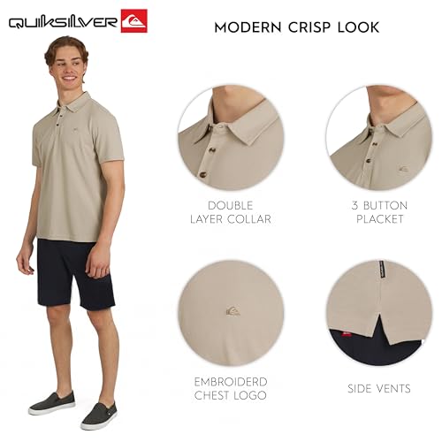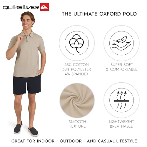 Dive into the Quiksilver lifestyle with this essential oxford polo, where surf culture meets cutting-edge innovation. This polo is the ultimate versatile and stylish wardrobe staple, designed to effortlessly transition from business and formal settings to your most relaxed weekends. The structured yet comfortable fabric provides a crisp, polished look, while the embroidered chest logo adds a signature touch of iconic style. Pair this essential piece effortlessly with shorts, jeans, or casual pants for a look that captures the spirit of exploration from the waves to the streets. Experience superior feel and all-day ease with premium softness and comfort. Crafted from a super soft, lightweight, and breathable cotton, polyester, and spandex blend, this shirt delivers the perfect balance of flexibility and durability. The fabric is enhanced with moisture-wicking performance to keep you cool and dry, and it features a distinct smooth texture for added style without sacrificing comfort. The shirt’s Regular Fit offers a comfortable, timeless look, featuring a classic ribbed collar and cuffs and a straight hem perfect for a clean, untucked appearance. Built to last, this polo offers exceptional durability and easy care. Signature design elements, including a three-button placket and side vents, ensure maximum comfort and mobility throughout your day. Designed for lasting wear, the high-quality, durable construction guarantees excellent shape retention, keeping your polo crisp and sharp, wash after wash. Best of all, maintenance is effortless: this polo is fully machine washable and ready to wear after a simple wash and tumble dry, so you can spend less time on laundry and more time chasing the adventure.