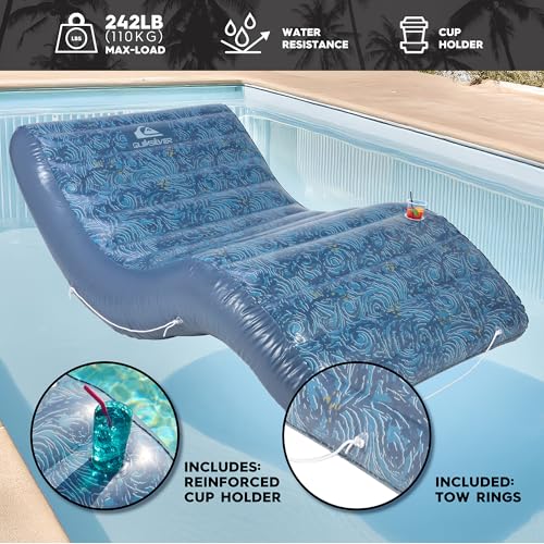 Quiksilver Pool Lounger Float –Inflatable Lounge Chair with Backrest & Cup Holders, Durable & Comfortable Pool Float for Adults – Perfect for Pool, Lake, or Beach