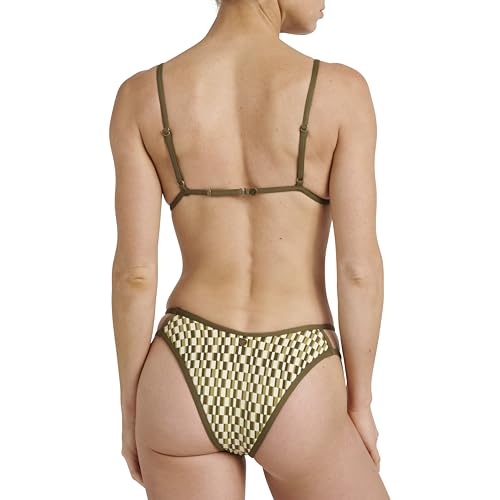 The Dylan cut out tile print bikini bottom features a bold geometric print with contrast binding and edgy cut out details. Designed with a high leg fit and skimpy coverage, this bikini bottom will definitely make a statement.