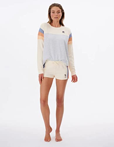 Bring back the vintage aesthetic with the Rip Curl Melting Waves Fleece Shorts. Regular fit. Elasticized waist with drawstring. Cut and sew panels. Palm tree Rip Curl icon on left leg. 55% cotton, 45% polyester. Machine wash, line dry.