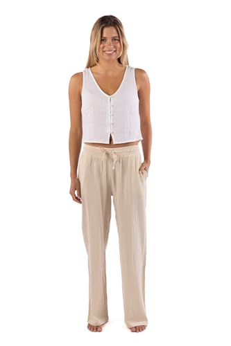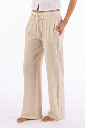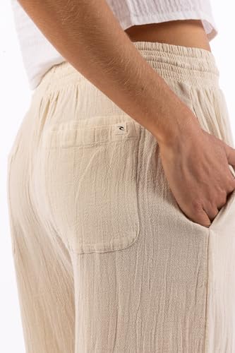 Rip Curl Womens Cotton Crepe Poplin Beach Pants – Smocked Waist, Front & Back Pockets & Longer Length for a Relaxed Fit