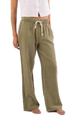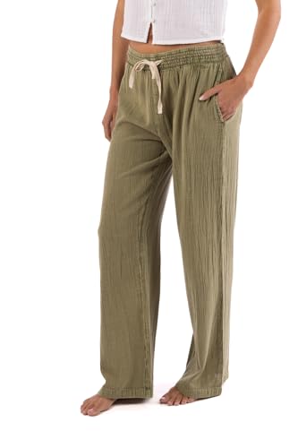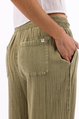 Rip Curl Womens Cotton Crepe Poplin Beach Pants – Smocked Waist, Front & Back Pockets & Longer Length for a Relaxed Fit