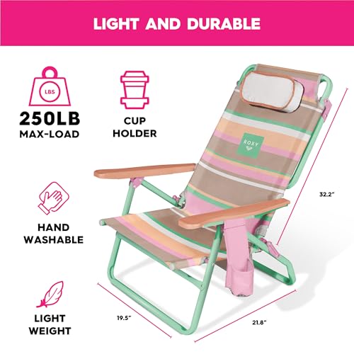 Roxy Beach Chair – Lounge Chair Outdoor, Lightweight Folding Chair with Adjustable Recline and Cup Holder – Beach Days, Pool Lounge Chairs, Folding Camping Chairs, Sun Tanning Chair or Festival