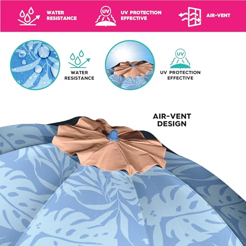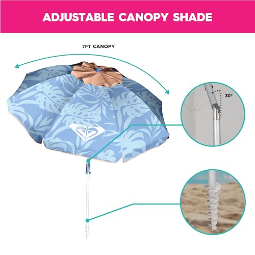Roxy Beach Umbrella with UV 50+ Sun Protection – Adjustable Tilt, Windproof Design, Lightweight Portable Umbrella with Carry Bag – Perfect for Beach, Patio, or Outdoor Use