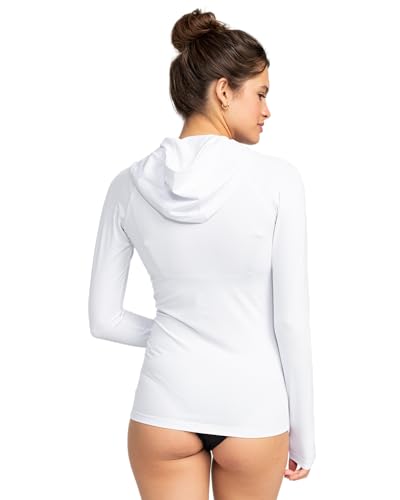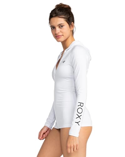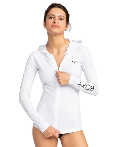Roxy Women’s Long Sleeve Zip-up Hooded Rashguard – UPF 50+ Sun Protection Quick-Dry Swim Shirt, White, Medium