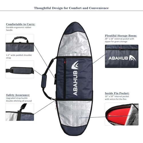 Abahub Premium Surfboard Travel Bag, Foam Padded Surf Board Cover, Shortboard Carrying Bags for Surfing, Outdoor, Airplane, Car, Truck,Size 6’0, 7’0, 7’6, 8’0, 8’6, 9’0, 9’6, 10’0