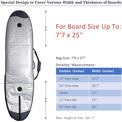 Wide Sizes Coverage: this board bag is specially designed to cover a wide range of board sizes up to 6’1 x 23′. Please check the detailed specs on the 2nd picture of the listing.