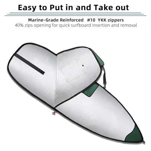 Marine-grade reinforced zippers: our zippered surfboard day bag is with #10 YKK zipper is corrosion-resistant for saltwater exposure,about 40% zips opening for easy-access&quick board insertion and removal