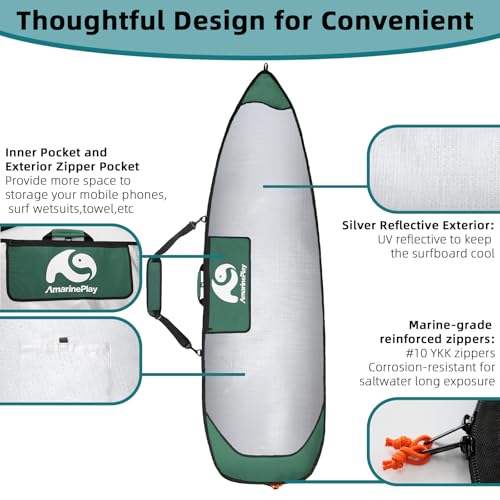 Multiple Storage pockets: our shortboard carrying bags is with inner pocket for storing mobile phones, keys,wallet etc.Exterior zipper pocket for surf wetsuits,towel,rash guard,surfboard leash,surfboard wax,beach blanket