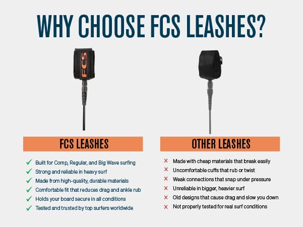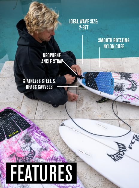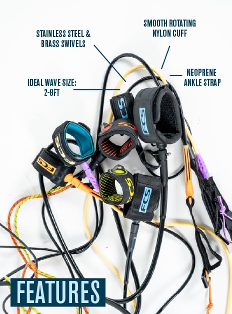 FCS Regular Classic Surfboard Leash – Durable 7mm Cord, Neoprene Strap, Anti-Tangle Swivel – Everyday Surf Leash for 2–8ft Waves