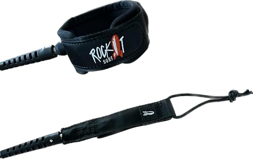 Rock It Surf Premium Surfboard Leash, 6ft & 8ft Surf Board Leashes, 7mm Legrope Strap for Shortboard, Longboard or SUP Made with Recycled Materials, Extra Strength Velcro & Stainless Swivels
