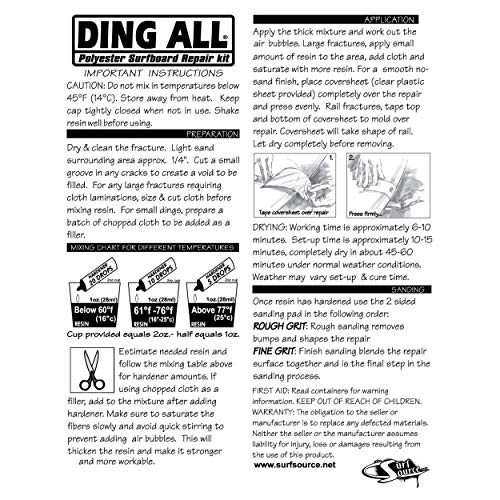 Ding All 2 Oz Polyester Repair Kit for Small to Medium Sized Polyester Surfboards Repairs