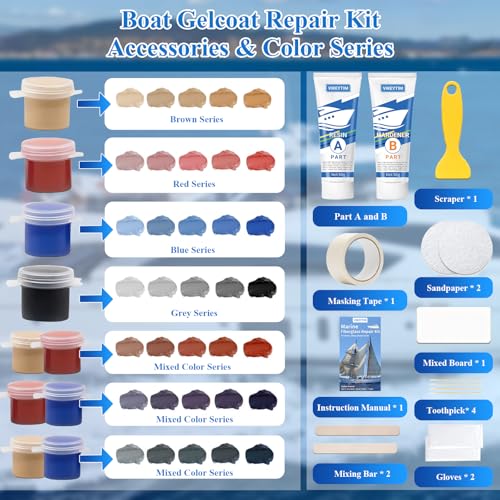 VIKEYTIM Marine Fiberglass Repair Kit (Color Match), 3.5oz/100g Gel Coat Repair Kit for Boats, Fiberglass Repair Fix Holes, Chips, Deep Cracks, Ceramic, Porcelain Fiberglass Filler