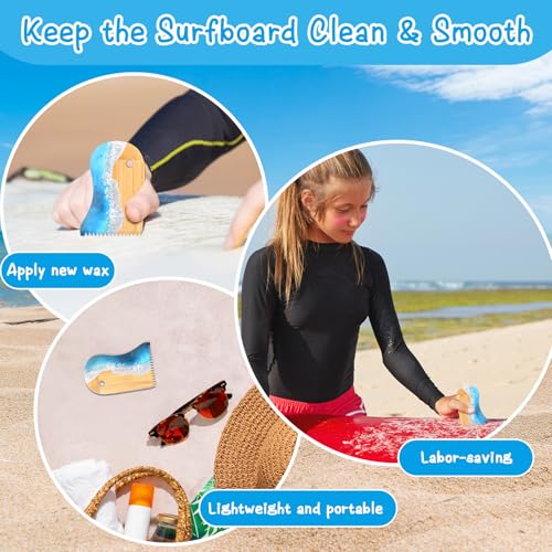 Surfboard Wax Comb Bamboo Surfboard Wax Scraper Surfboard Wax Removal Tool with Hole Surfboard Accessories For Surfing Board Men Women Surfer Gift Ocean Wave Pattern