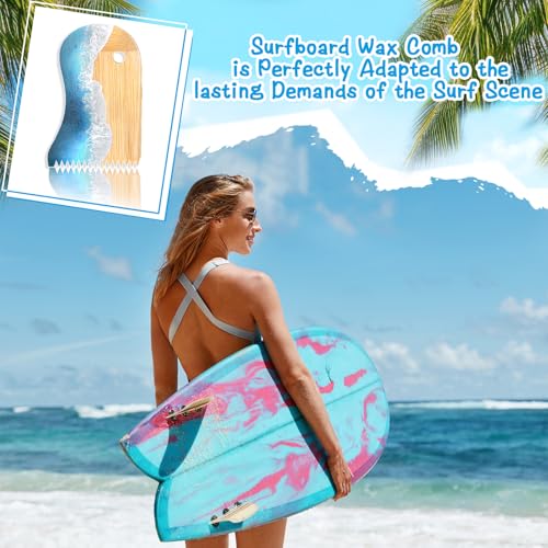 MSHUNKEJI Surfboard Wax Comb Bamboo Surfboard Wax Scraper Surfboard Wax Removal Tool Surf Wax Comb with Hole Surfboard Accessories for Surfing Board Men Women Surfer Gift Ocean Wave Pattern