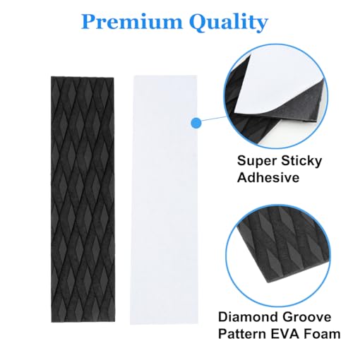 Excellent Non-Slip Grip: This trimmable EVA pad has 3mm deep diamond grooves with a textured surface designed for excellent grip; The ultralight diamond groove pattern EVA foam is comfortable to stand on while also maintaining a textured grip on the foot, which is enough to provide the support needed for all the moves in surfing.