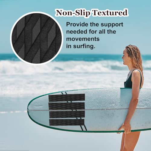 Villozxiny 4 Piece EVA Surfboard Deck Traction Pads Non-Slip Front Traction Pad Grip Mat for Surfing,Surf Boards, Stomp Skimboards, Funboard, Fish Board, Black