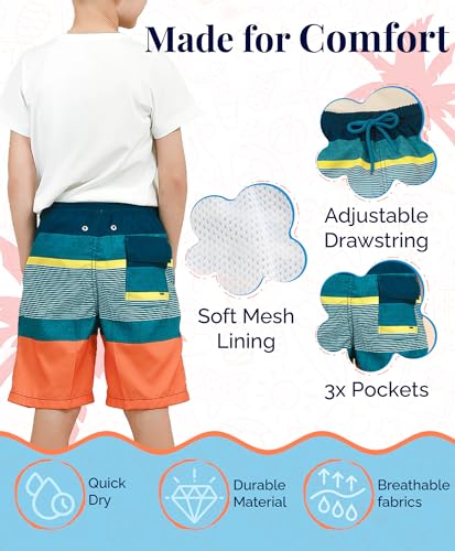KAILUA SURF Boys’ Swim Trunks Quick Dry Board Shorts with Mesh Liner, Sizes 2T-18/20