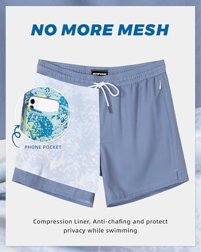 SURF CUZ Mens Swim Trunks with Compression Liner Swimming Trunks 5 Inch Bathing Suit Quick Dry Swim Shorts
