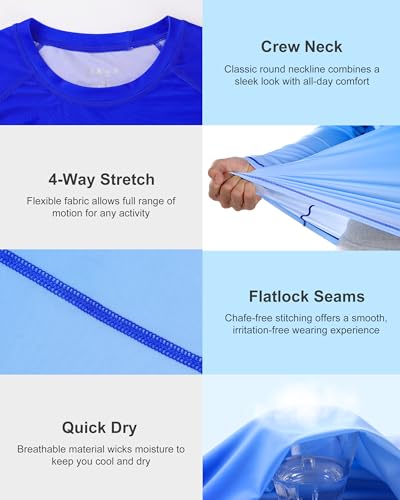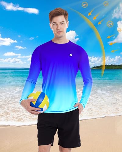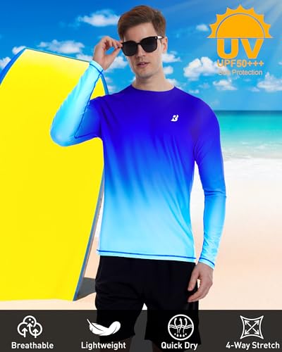 Roadbox Men’s UPF 50+ Swim Shirts, Long Sleeve UV Sun Protection Rash Guard, Quick Dry SPF T-Shirt for Beach Surfing Fishing