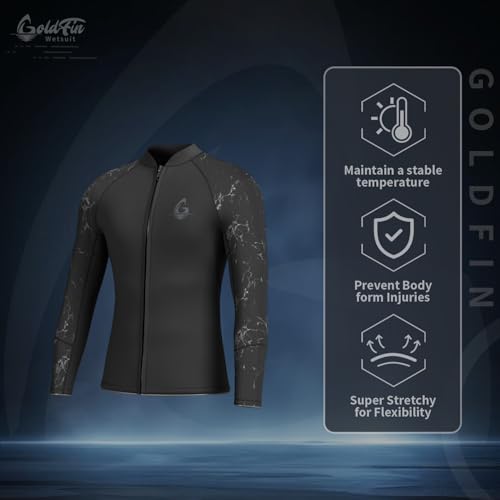 GoldFin Mens Wetsuit Top, 3mm Wetsuits Men Neoprene Jacket Long Sleeve Wet Suits for Water Sports Diving Surfing Kayaking Swimming
