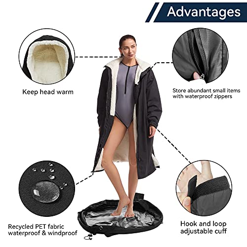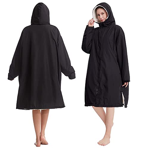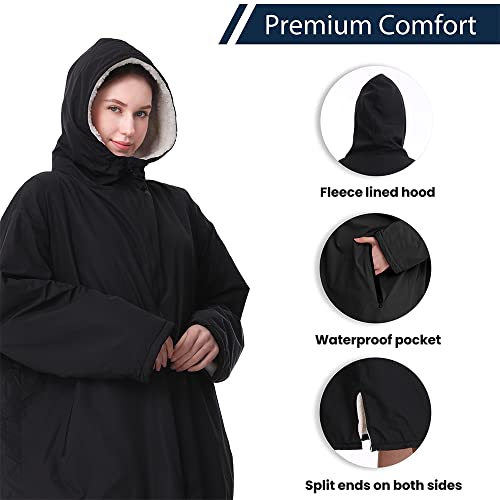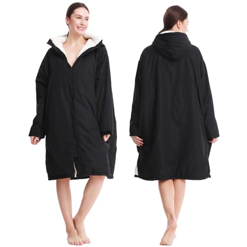 Oksun Waterproof Swim Parka, Windproof Surf Poncho Warm Coat, Recycled Fabric Water Resistent Oversized Sherpa Lining Jacket