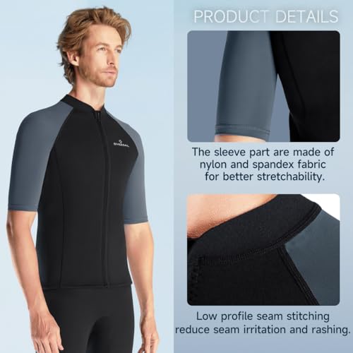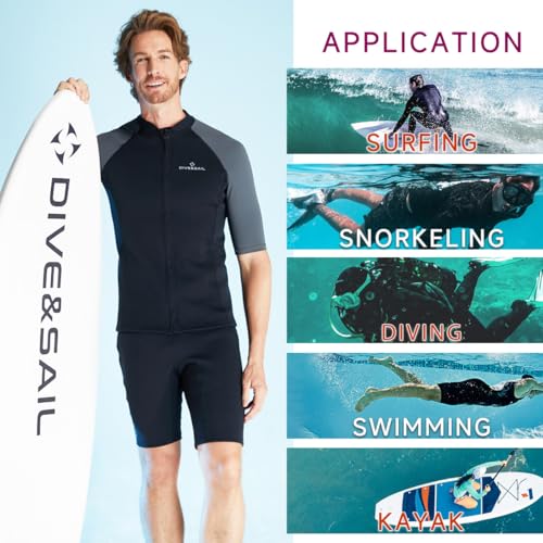 【FUNCTIONAL WETSUIT TOP】 When you are in the water,wetsuit tops can add buoyancy and it is lightweight will make you feel comfortable. Great light weight skins suit for warmer dives.Can protect you against cold water and harsh chemicals in a public pool.