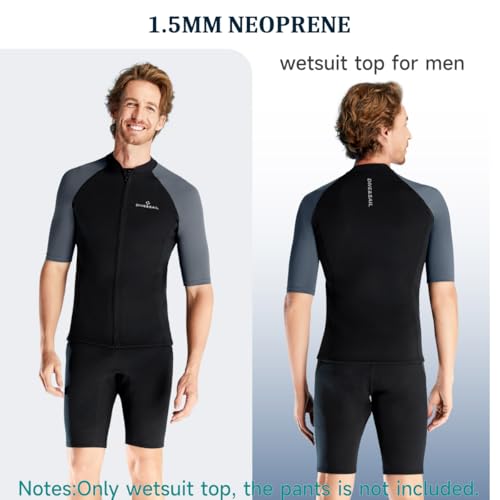 Wetsuit Top Men Short Sleeve Front Zip Wetsuit Jacket 1.5mm Neoprene Swimsuit for Swimming Diving Surfing