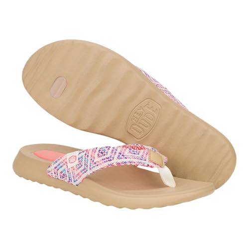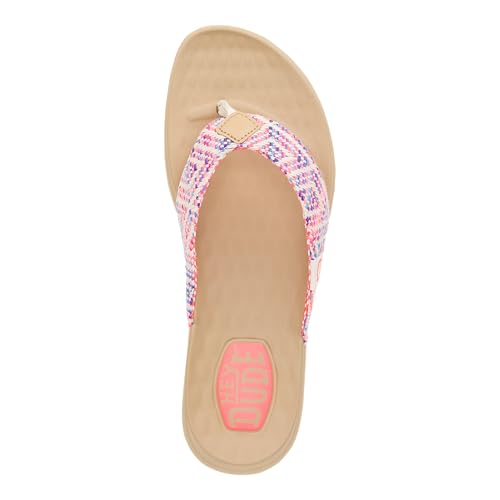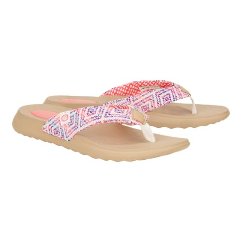 HEYDUDE Christi Flip Surf Baja Blue/Pink/Multi Size 5, Women’s Sandals, women’s flip flops, Comfortable & Light-Weight
