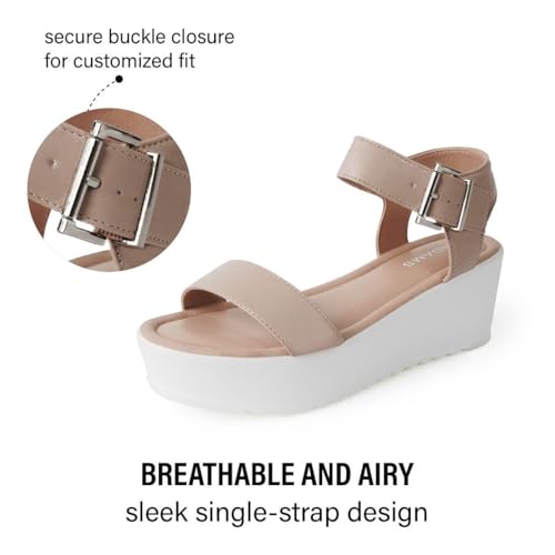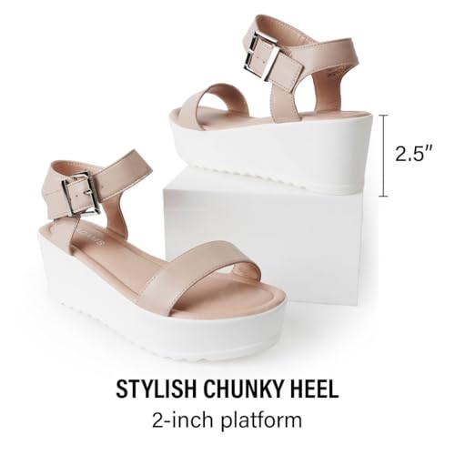 J.Adams Surf Platform Sandals – Women’s Open Toe Chunky Low Mid Heel Wide Summer Block Flatform Espadrille Wedge – Comfortable Casual Walking Vegan Jelly Flat Shoes with Adjustable Ankle Strap and Lug Sole