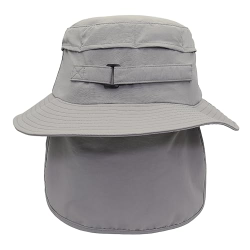 This surf bucket sun hat is made of lightweight nylon material. It is well seamed and not easily worn out. Being designed with a chin strap and neck flap, it will not easily fall off while surfing or doing other watersports. And also the neck flap is removable, it bring you much more protection from UV damage. Wide stiff brim paddling helps you with a wide vision and not being burned by the sun.