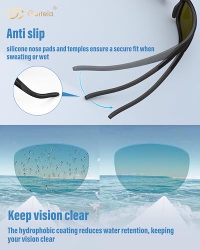 Goiteia Polarized Sports Sunglasses for Men Women, Wide Wrap Around Sunglasses, UV400 Protection, Hydrophobic Lens for Clear Vision, Anti-Slip Fit for Fishing Surfing Boating SUP