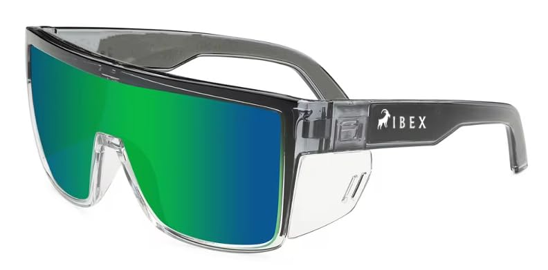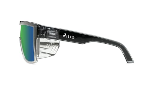 IBEX The GOAT Safety Sunglasses ANSI Z87+ Certified, Ultra UV 400 Protection, Mirror Lenses and Black Frame, Men, Women, Outdoor/Sports, Surf, Construction, Work, PPE