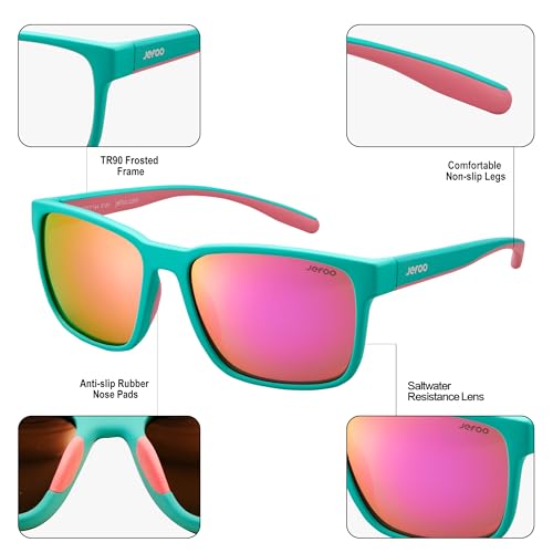 Jefoo Fishing Sunglasses feature a TR90 frame and TAC polarized lenses, combining style and durability. Offering UV 400 protection, they resist seawater corrosion and scratches, ensuring a clear visual experience. The polarized lenses with UV400 coating effectively block glare and harmful rays. The lightweight TR90 frame with non-slip nose pads and temples provides a comfortable fit, fishing, surfing, paddling, driving, cycling, hiking, running, skiing, boating perfect for various outdoor activities. With a classic trendy rectangle frame design, these sunglasses are suitable for both men and women, making them an ideal gift. Jefoo is committed to providing excellent after-sales service, ensuring a seamless shopping experience for customers.