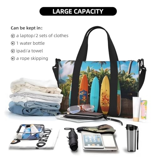 Large Capacity: The Size of This Surf’s up Surfboard Print Duffel Sport Gym Bag Is 16.1 Inches Long X 111.4 Inches High X 5.9 Inches, Enough Space to Accommodate All Your Travel Necessities, 3-5 Days Replacement Clothes, Wallets, Mobile Phones, Umbrellas, Cosmetics, Toiletry Kits, Etc.