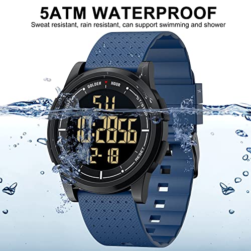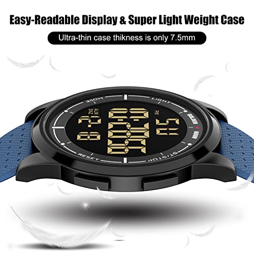 GOLDEN HOUR Ultra-Thin Minimalist Sports Waterproof Digital Watches Men with Wide-Angle Display Rubber Strap Wrist Watch for Men Women