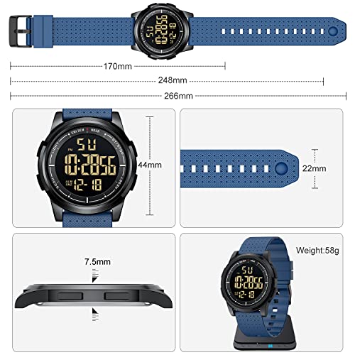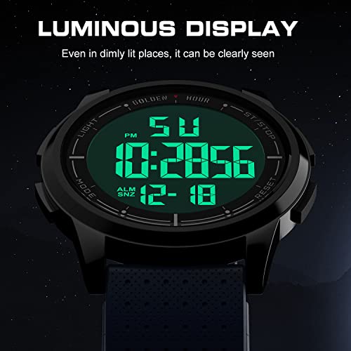 PASOY Mens Women Digital Watch Big Dial Light LED Swim Waterproof Rubber Band Alarm Black LED Watches 50MM