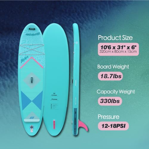 FREESUN KUSHEE 10’6” × 31” Inflatable SUP, Surfboard,Beginner Stand Up Paddle Board for First-Time Riders, Stable Wide Nose Design, Easy to Carry,Front Bungee, Dual-Tech EVA Pad, Heat-Fusion Rails