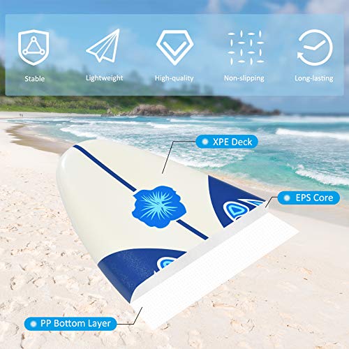 【Durable Construction】 The GYMAX surfboard is made of durable foam and slick HDPE bottom, giving you durable usage and help you surf on water with high speed. Beside, lightweight material ensures easy usage.