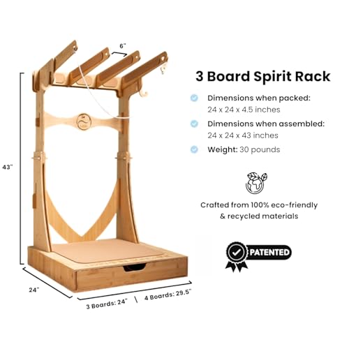 PATENTED DESIGN: Crafted from 100% sustainable materials, this vertical surf rack is built with durability and style in mind. The Spirit Rack is designed to showcase and protect your boards while being environmentally responsible.