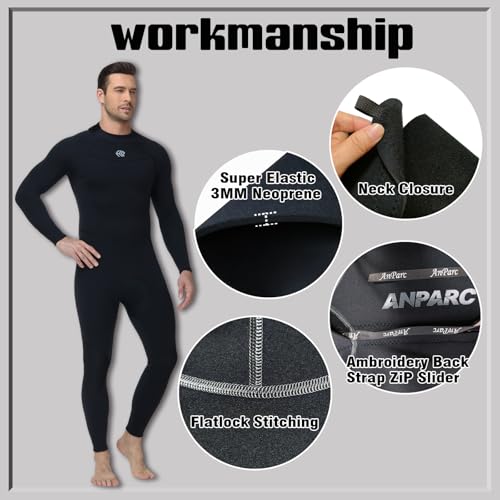 3mm Neoprene Full Wetsuit for Men, Premium Diving Snorkeling Surfing Swimming Suit