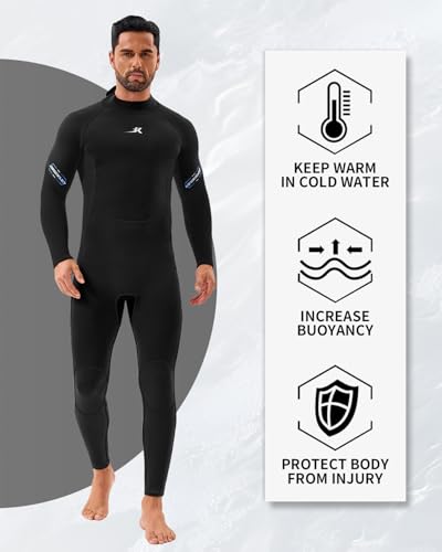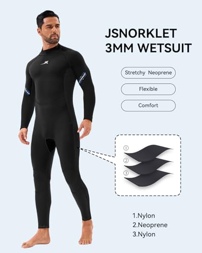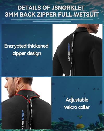 Jsnorklet Wetsuits for Men, 3mm Back Zip Full Wetsuit for Diving Swimming