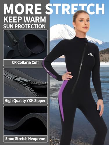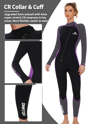Owntop Wetsuit 5mm Neoprene Diving Suit – Mens Womens Thicken Full Wet Suit, Front Zip Long Sleeve UPF50+ Keep Warm Swimwear for Scuba Surfing Swimming Diving Snorkeling Water Sports